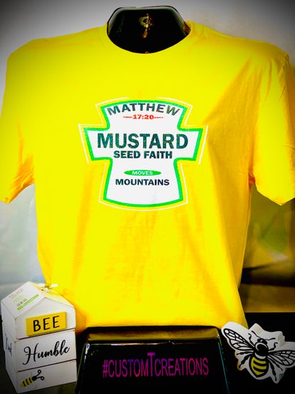 "Embrace the power of faith with our 'Mustard Seed' T-shirt. This inspiring design celebrates the profound strength found in even the smallest acts of belief. Wear it as a reminder that with faith, no matter how small, anything is possible. Perfect for those who find hope in life's little miracles."