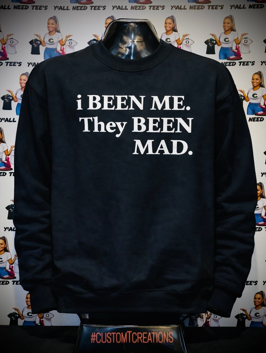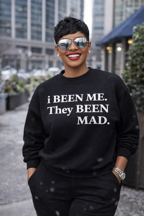 Our “i BEEN ME. They BEEN MAD.” sweatshirt is made for those who stay true to themselves no matter what. This bold statement piece blends everyday comfort with luxury street style, it's perfect for running errands, brunch dates, or making quiet moves while turning heads.